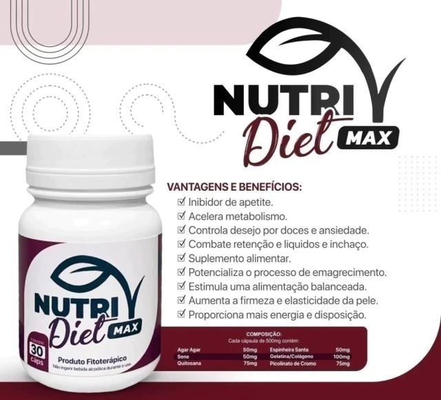 O Nutri Diet Max 30 cápsulas original é um emagrecedor natural à base de ervas, Por ser um produto da linha premium, um dos mais potentes com alta porcentagem de emagrecimento . O composto é indicado para pessoas que querem perder peso, pois ele acelera o metabolismo, reduzindo assim a gordura no organismo. Sua fórmula inibe o apetite e ajuda na reeducação alimentar.