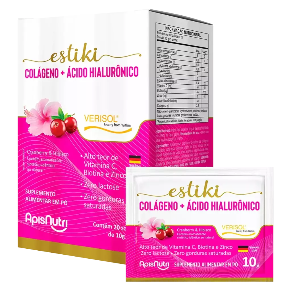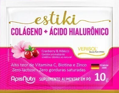 Estiki Colágeno + Acido Hialurônico Sachê Cranberry & Hibisco